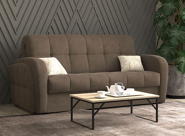 Преимущество дивана - механизм аккордеон, который при раскладывании образует высокое ровное спальное место, по комфорту сравнимое с настоящими кроватями. Кроме этого, только такой механизм позволяет выбирать размер дивана из 5 вариантов: 131/171/191/206/231 см.