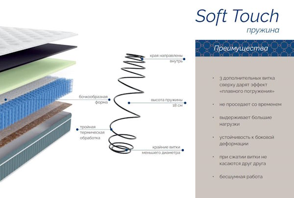 В качестве основы матраса используется система анатомической поддержки Magic Touch, состоящая из двух типов независимых пружин - основная площадь спальной поверхности поддерживается блоком Soft Touch (420 пружин на спальное место), а по периметру данный блок окружён усиленными пружинами Magic Chess, обеспечивающими плотность краёв и сохранение геометрической формы матраса в течение всего периода эксплуатации.