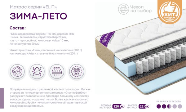 | Жесткость у матраса | Разносторонняя жесткость |
