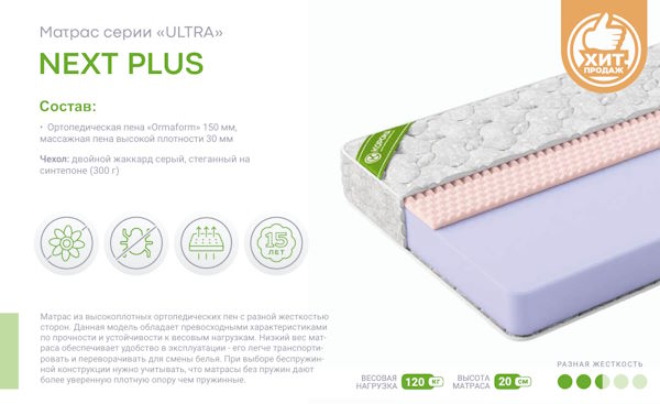 | Жесткость у матраса | Разносторонняя жесткость |